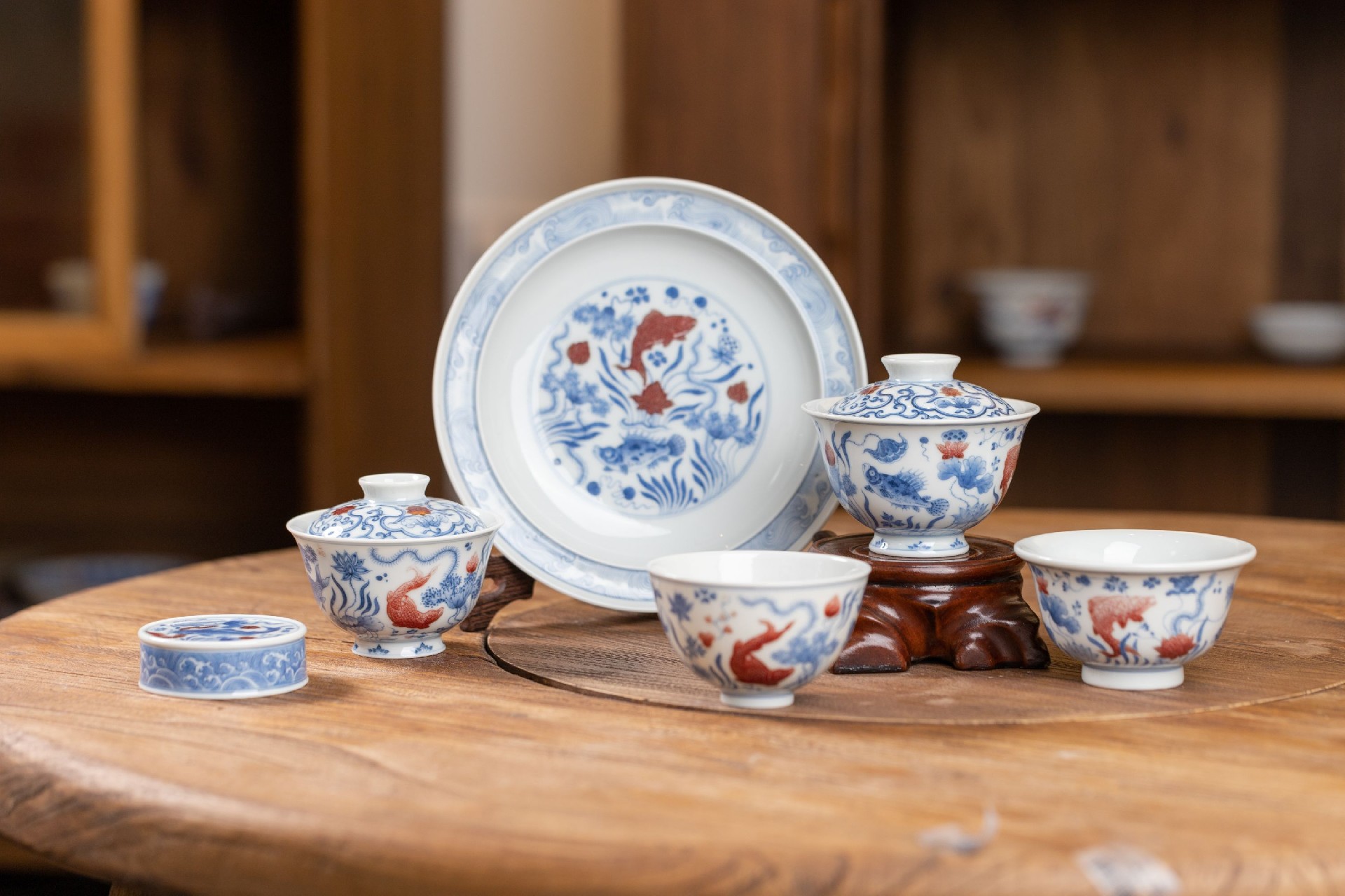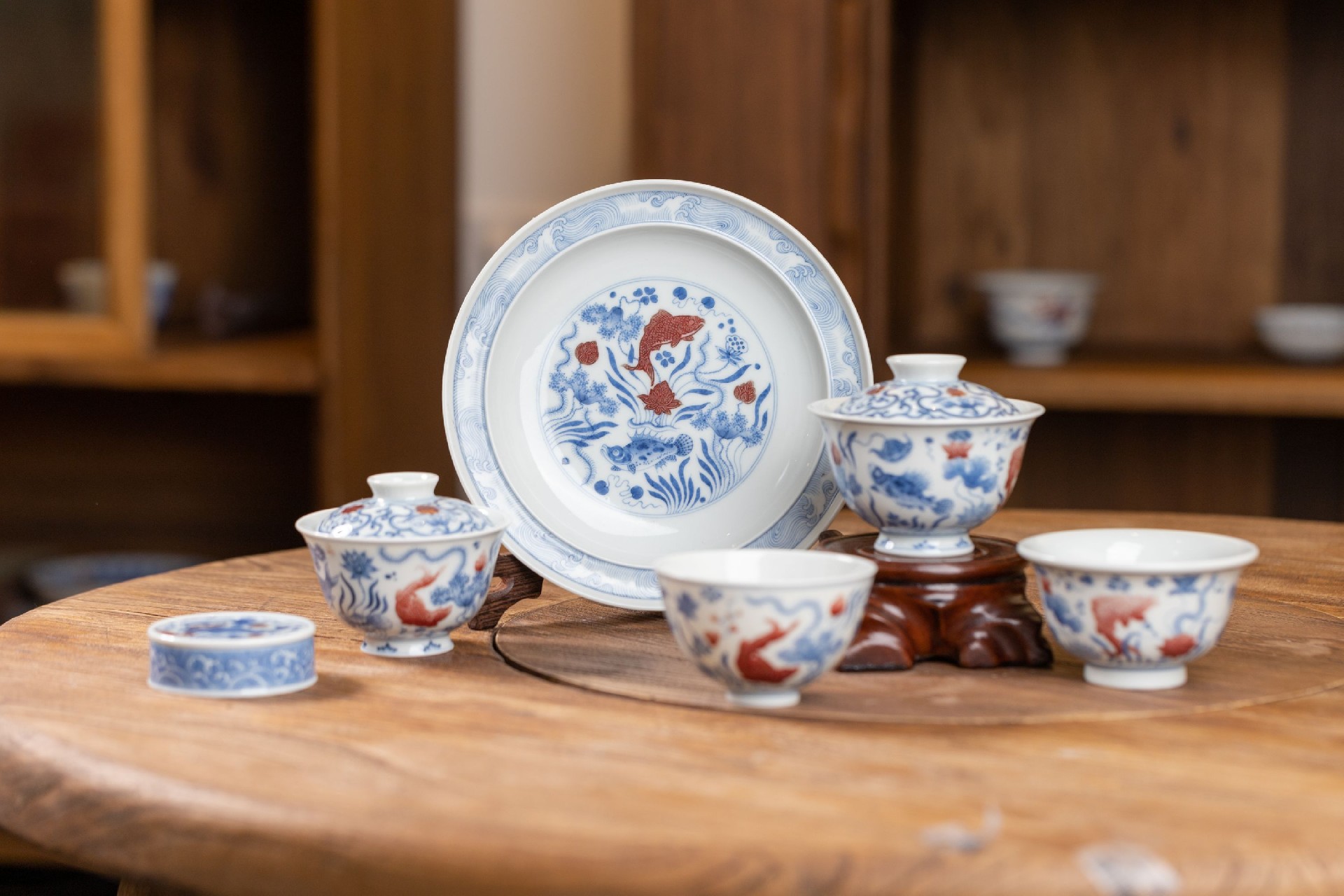 屹朴青花釉里红鱼藻套组