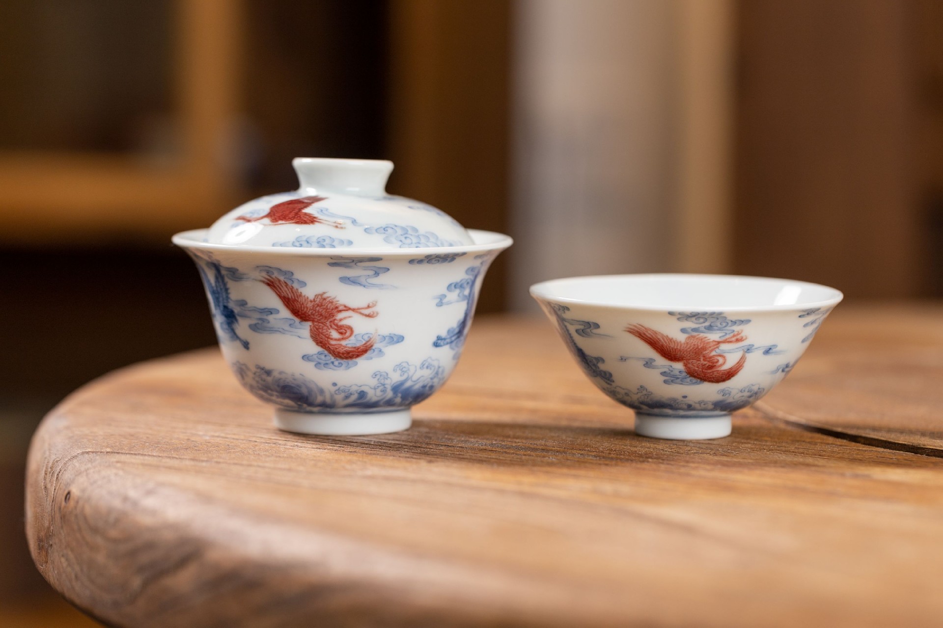 屹朴青花釉里红五鹤套组